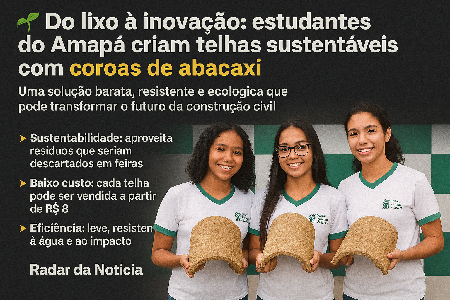 Do lixo à inovação: estudantes do Amapá criam telhas sustentáveis com coroas de abacaxi